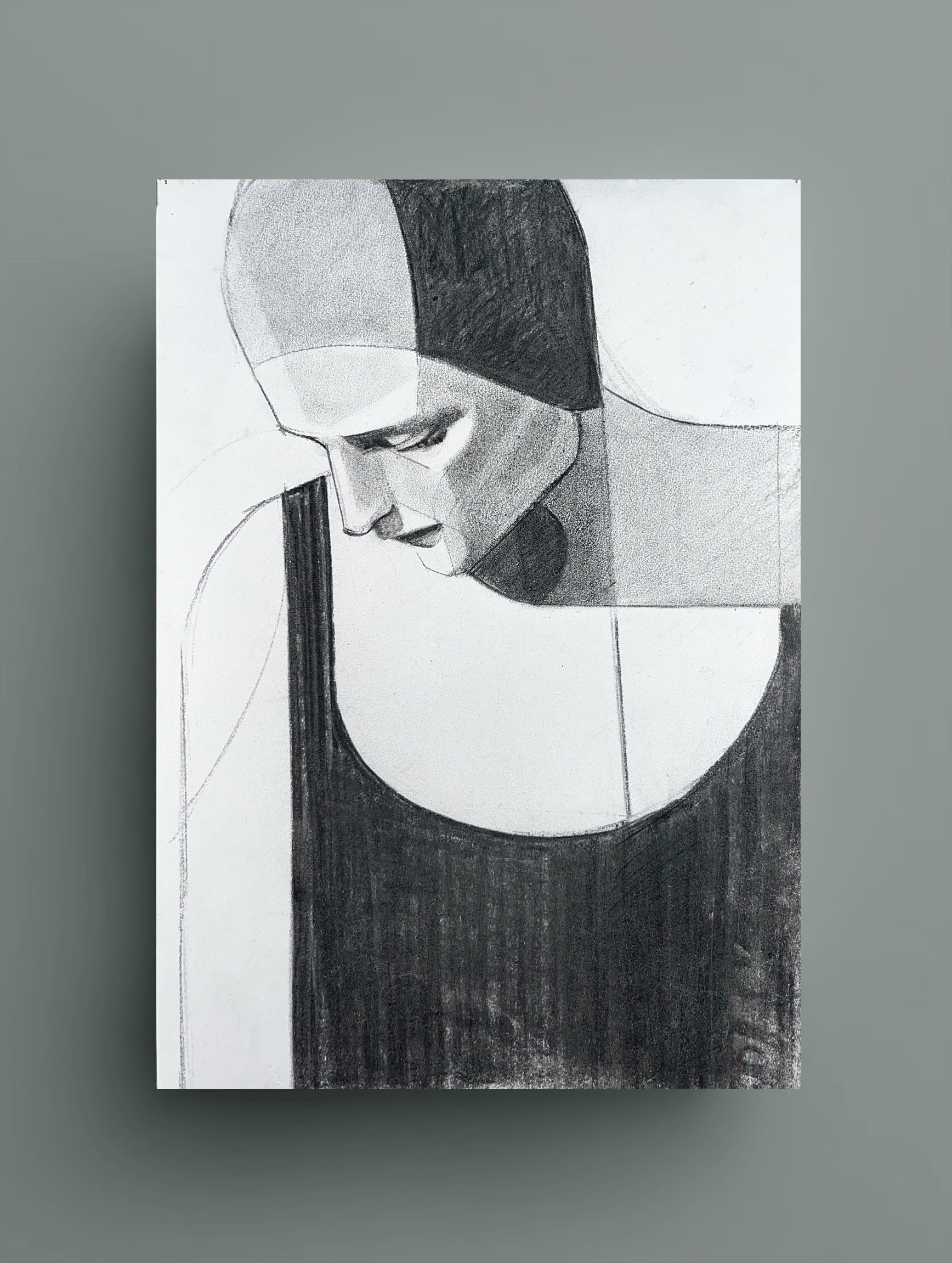 This hand-drawn charcoal sketch were originally created as a study for large paintings for the latest collection; 'IN NEW PERSPECTIVES'
