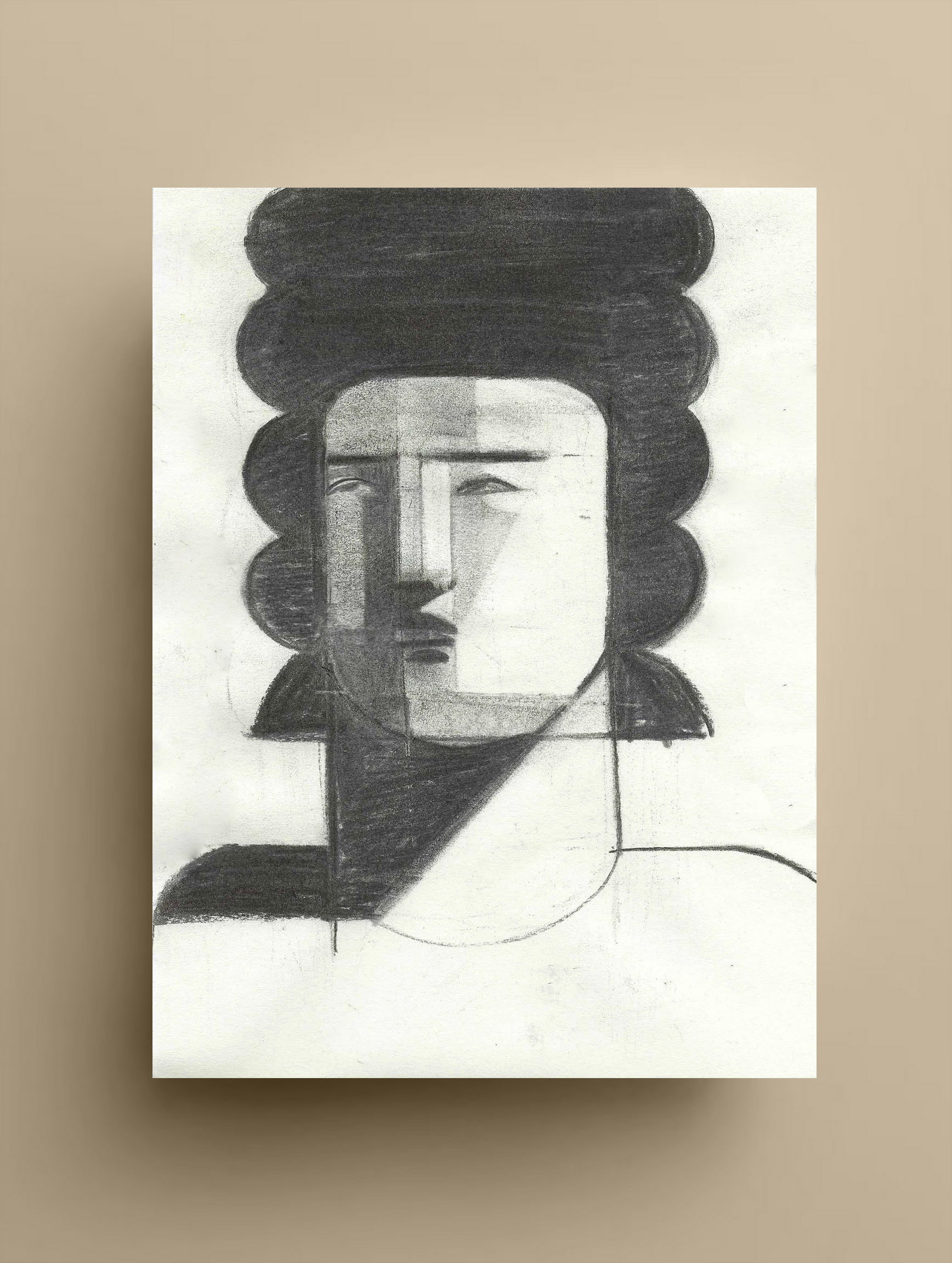 This hand-drawn charcoal sketch were originally created as a study for large paintings for the latest collection; 'IN NEW PERSPECTIVES'