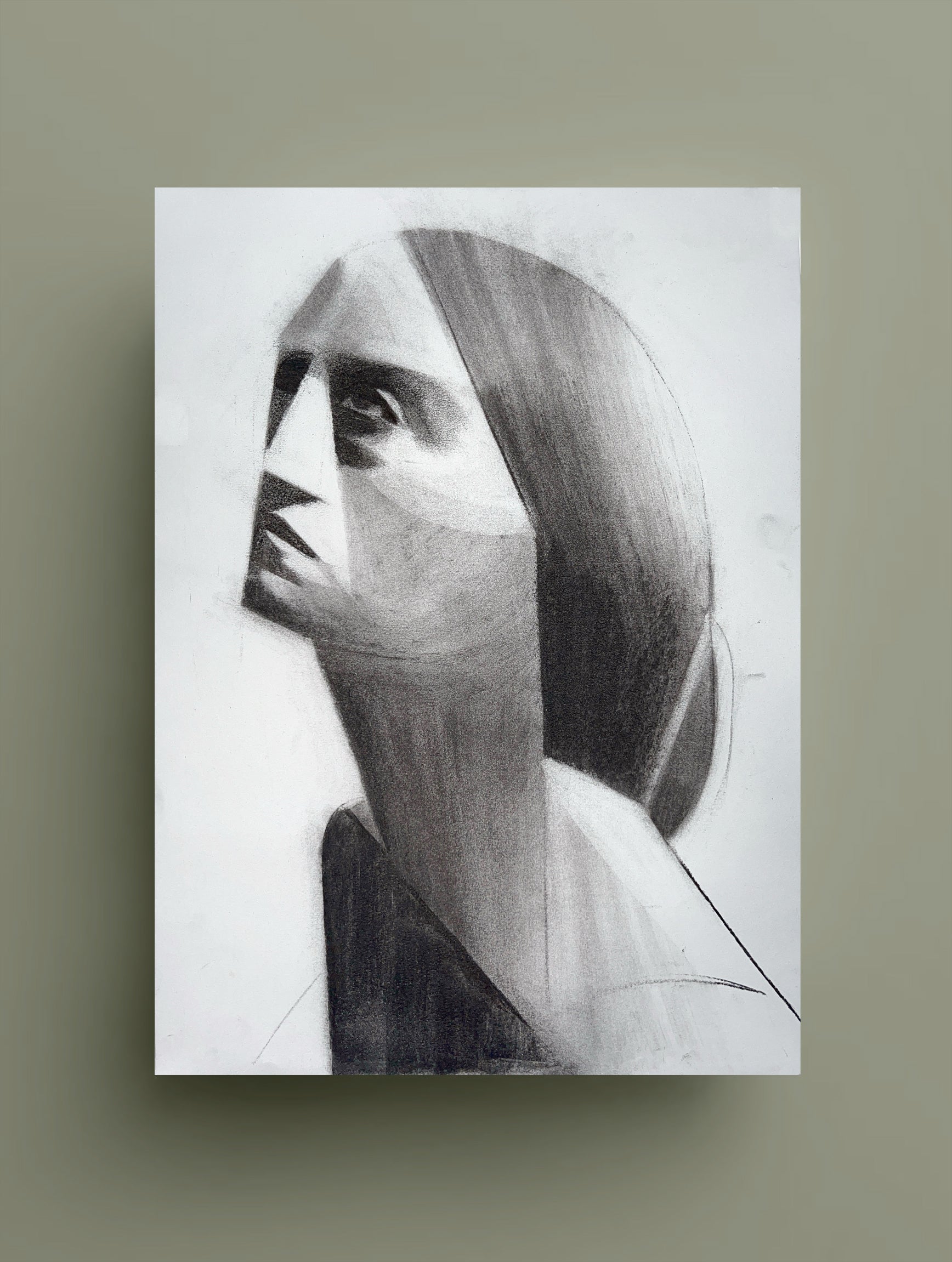 This hand-drawn charcoal sketch were originally created as a study for large paintings for the latest collection; 'IN NEW PERSPECTIVES'