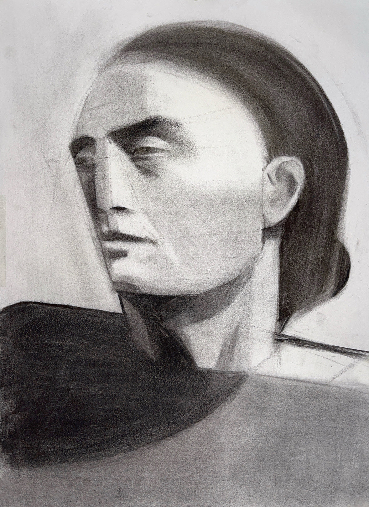This sketch reveals the artist's process and attention to detail. The rich texture of the charcoal on paper highlights even the slightlest drawing gestures of the artist, making this piece a striking work of art in its own right.