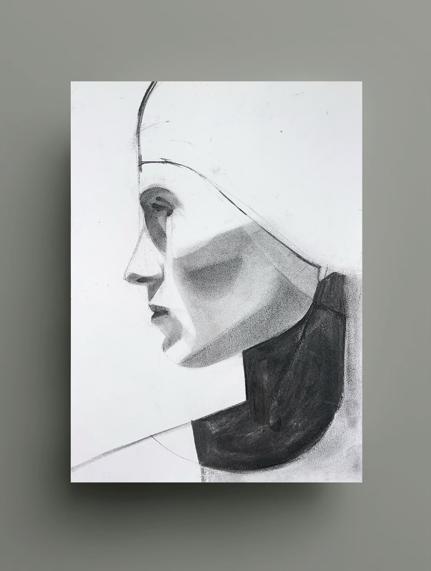 This sketch reveals the artist's process and attention to detail. The rich texture of the charcoal on paper highlights even the slightlest drawing gestures of the artist, making this piece a striking work of art in its own right.
