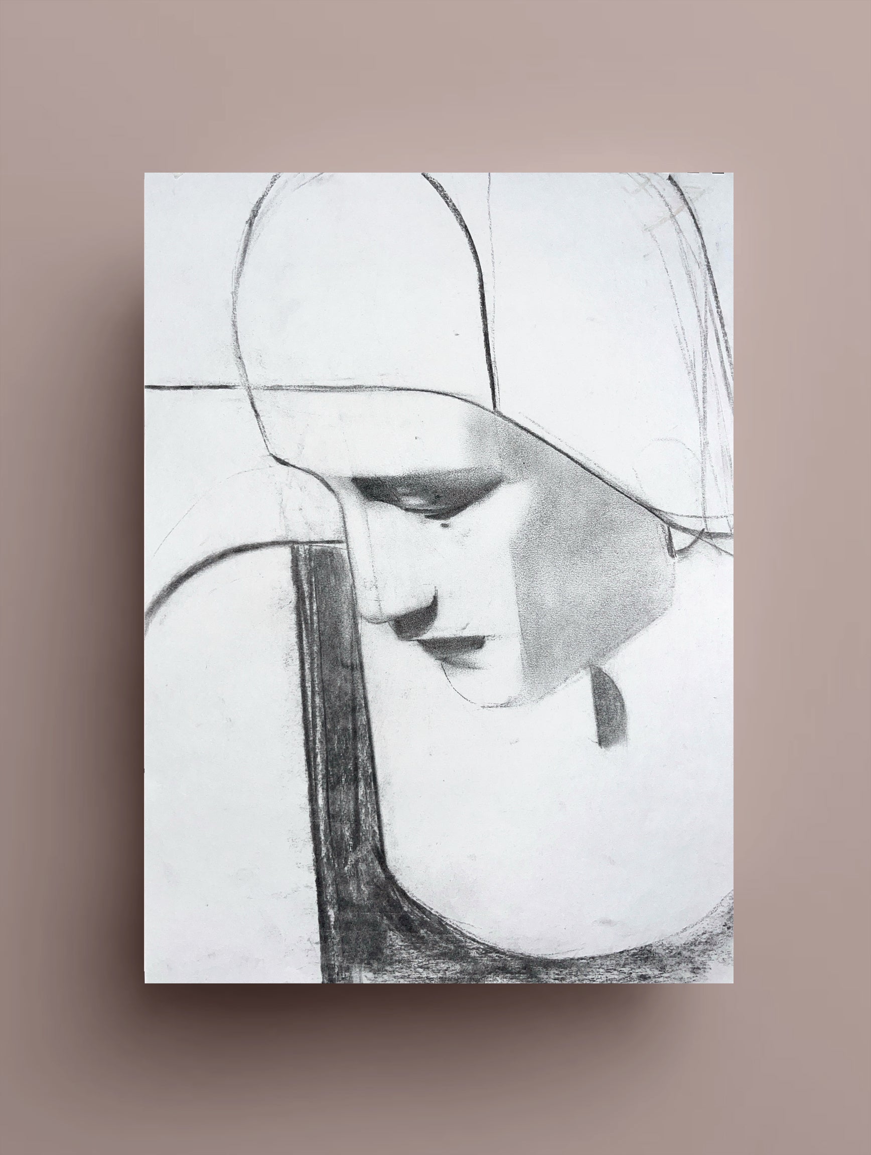This sketch reveals the artist's process and attention to detail. The rich texture of the charcoal on paper highlights even the slightlest drawing gestures of the artist, making this piece a striking work of art in its own right.